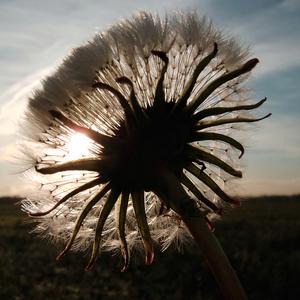 Dandelion seedhead at sunset